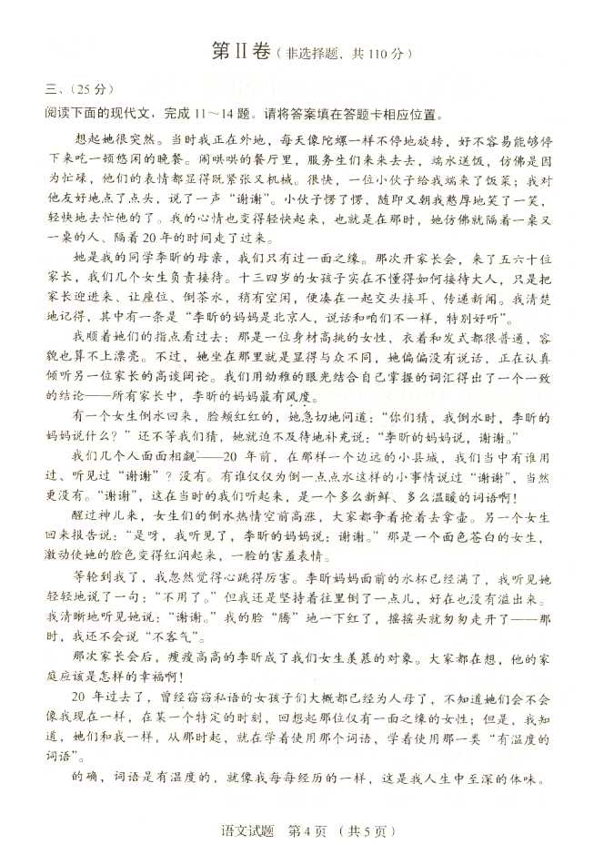 2011年全国成人高考高起点《语文》试题及答案
