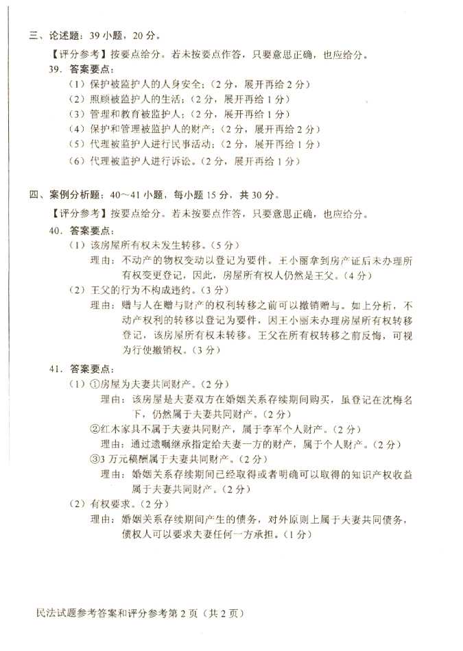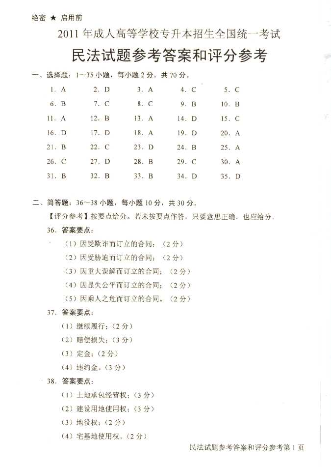 2011年全国成人高考专升本《民法》试题及答案