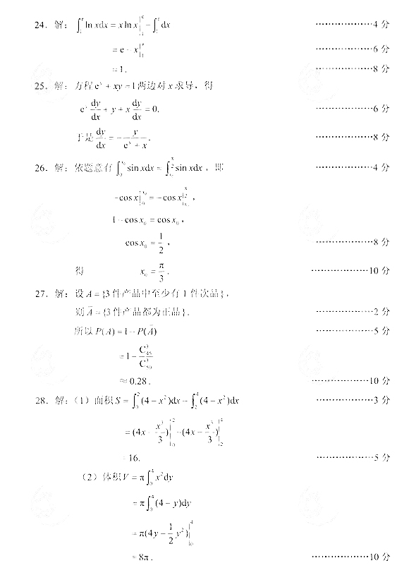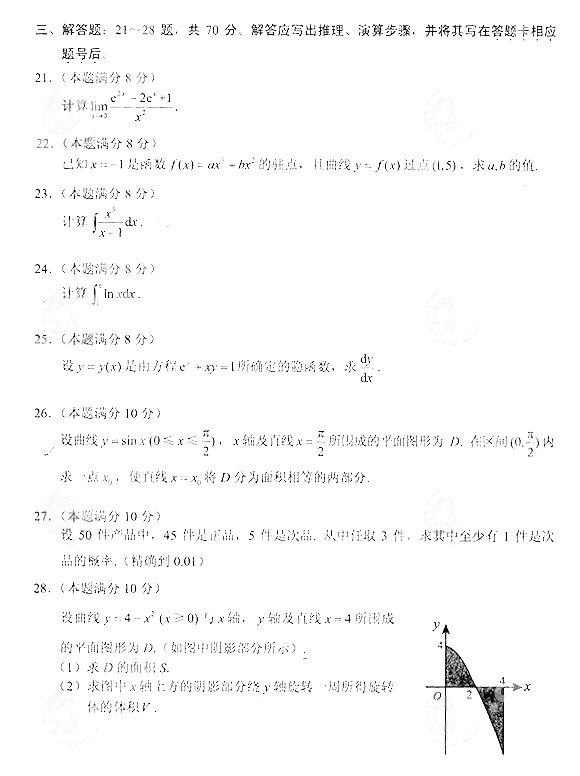 2014年成人高考专升本《高等数学(二)》真题及答案